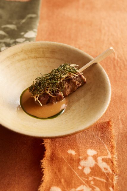 The deep umami flavour harmonised beautifully with the sharp acidity of Crémant d'Alsace Brut Riesling Jean Geiler from the Alsace region, creating a clean and pleasant taste reminiscent of an instrumental melody from the mountains and forests.