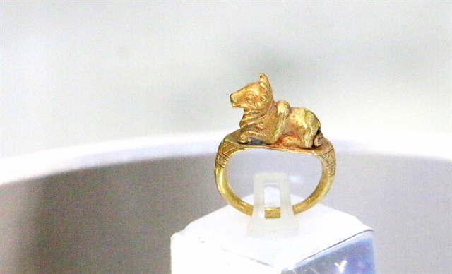The Golden Nandin ring, one of the national treasures found in the Óc Eo – Ba Thê archaeological complex. — VNA/VNS Photo Công Mạo