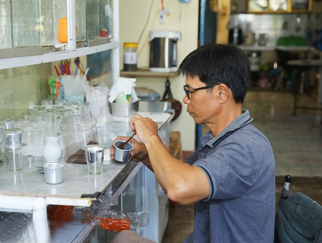Nguyễn Văn Bích opened a coffee shop at his home to earn income to take care of his family. Photo Huy Anh