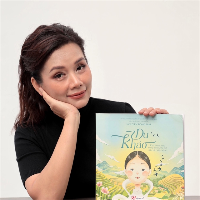 Author Nguyễn Bông Mai with her first book Du Khảo: Rực Rỡ Sắc Màu Trang Phục Phụ Nữ Các Dân Tộc Việt Nam (A Brilliant Visual Journal: Vietnamese Women’s Ethnic Costumes). Photo thethaovanhoa.vn