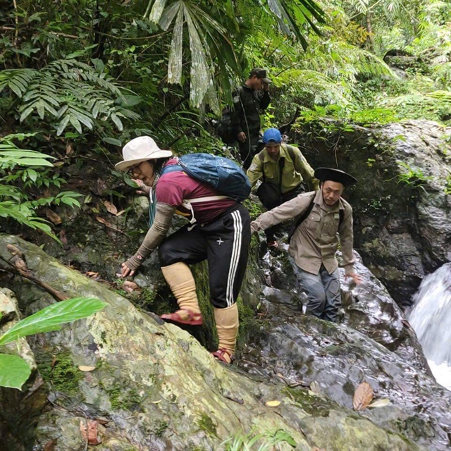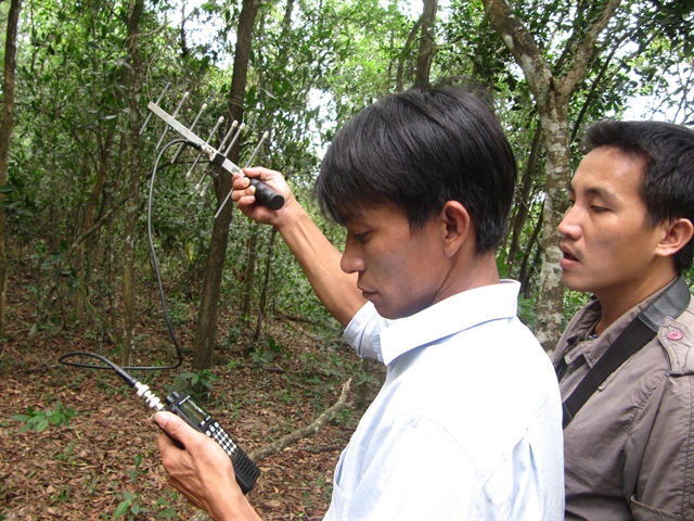Two biologists use a tracking device to supervise species in a jungle in Central Việt Nam. Biodiversity conservation needs the participation of young researchers. VNS Photo Công Thành