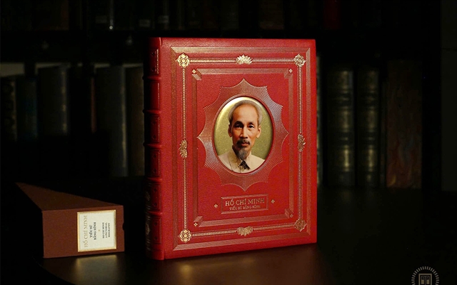 Meanwhile, the special edition is limited to 100 copies for collectors. Bound in leather from Alran (France) in a vibrant piment colour, it features handcrafted bookbinding combined with painting in the cosway binding style (a technique that originated in early England). The cover showcases a portrait of President Hồ Chí Minh created with lacquer.