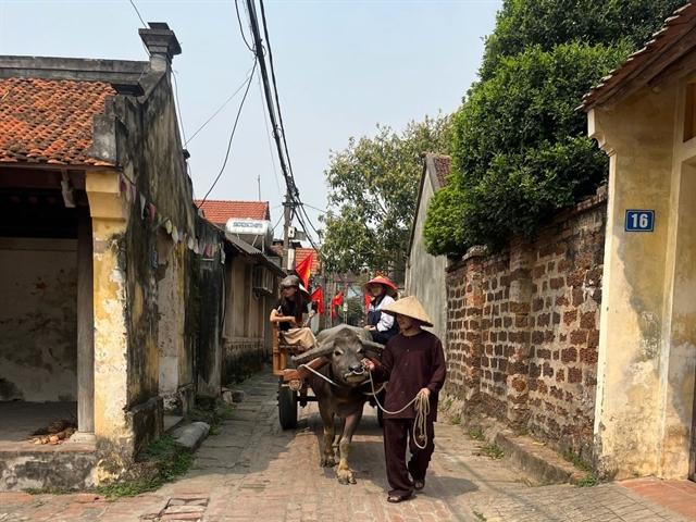HÀ NỘI — Through the narrow tree-lined alleys of Đường Lâm Ancient Village, a wooden cart creaks forward, pulled by a patient water buffalo – its slow, steady steps setting the rhythm of a village where time seems to move just a little more gently.