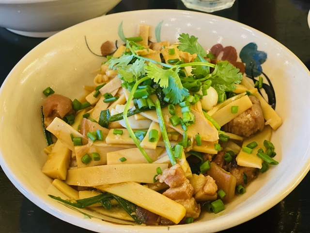 If you are a bamboo shoot lover like my husband, thịt heo xào măng (stir-fried pork with bamboo shoots) is an ideal choice to enjoy with rice.