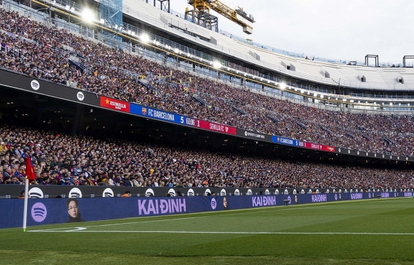 Kai Đinh’s name and image appear at Camp Nou Stadium in March. — Photo thegioidienanh.vn