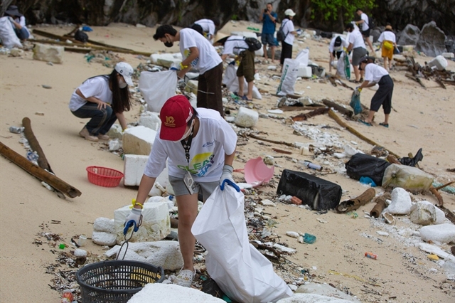 Volunteers, including university students and representatives from tour operators and environmental organizations, collected rubbish on a beach in Hạ Long Bay, a UNESCO-recognised World Heritage site. This effort was part of the 'Clean the Bay' initiative, which aims to raise community awareness about environmental protection. — Photo courtesy of Bhaya Cruises