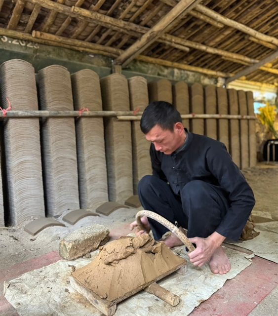“The clay must be selected from a low-lying, long-term flooded area. We have to remove rocks and gravel and complete many other steps before putting it into a mould for shaping,” said Hưng, the third generation in his family producing traditional yin‑yang tiles.