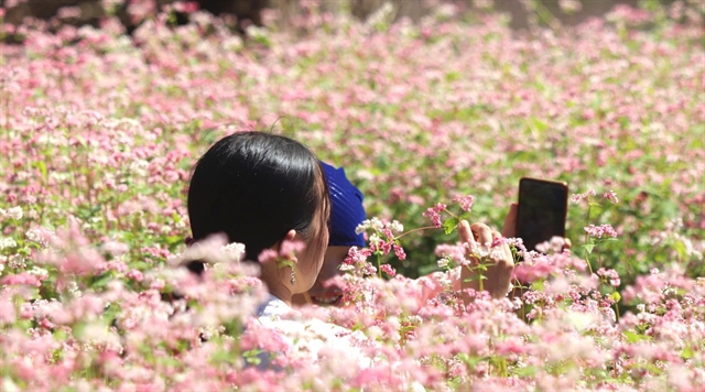 Lũng Cú Village resident Thào Mó Sính said: “Our family has planted about 1,000sq.m of buckwheat flowers. With the blooms in full glory, many tourists come to take photos. Just a small fee of VNĐ10,000 grants them entry into our garden.”