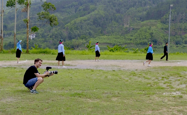 Director François Bibonne travels to Bình Liêu in Quảng Ninh Province to film local Sán Chỉ ethnic women playing football. Photo courtesy of François Bibonne