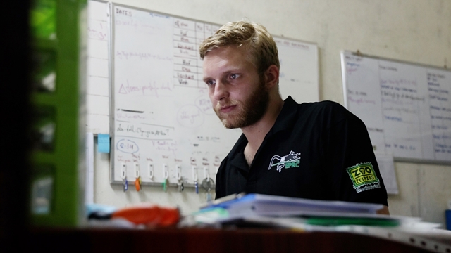 Wernhard Vodisch makes his rounds to check every single cage in the centre before the end of a work day. VNS Photo Bảo Long