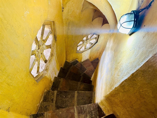 The narrow staircase inside the tower. Photo hanoimoi.vn