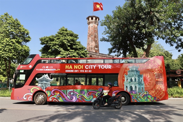 A hop-on hop-off bus passes by Hà Nội's iconic flag tower. — VNA/VNS Photo Vân Chi