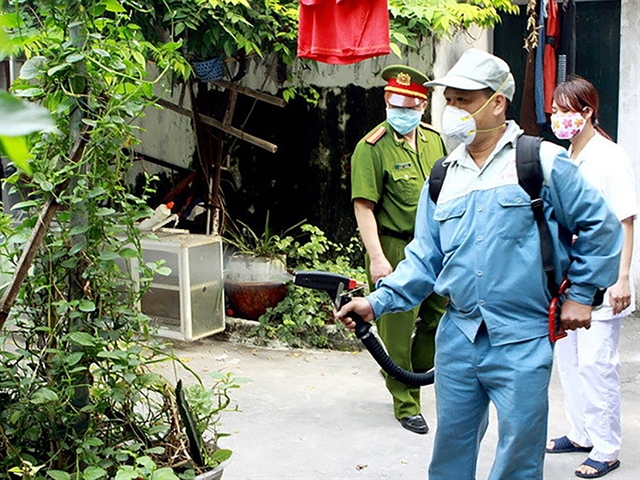 A health worker in Hà Nội conducts mosquito control spraying.— Photo hanoimoi.vn