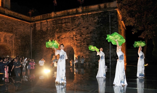 Guests enjoy an art performance at the Thăng Long Imperial Citadel. The historic site set to host the World Cultural Festival this October. Photo bvhttdl.gov.vn