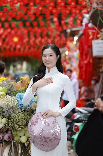 A young woman wearing a traditional áo dài on Hàng Mã Street, Hà Nội. — VNS Photo Trương Vị
