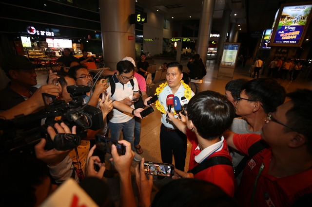 Lại Lý Huynh receives warm welcome after landing at Tân Sơn Nhất in HCM City. Photo Việt Nam Sports Team