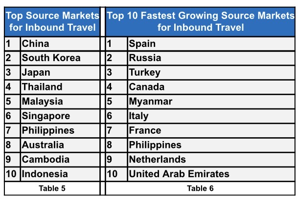 China, South Korea, Japan and Thailand remain the primary source markets, it said.