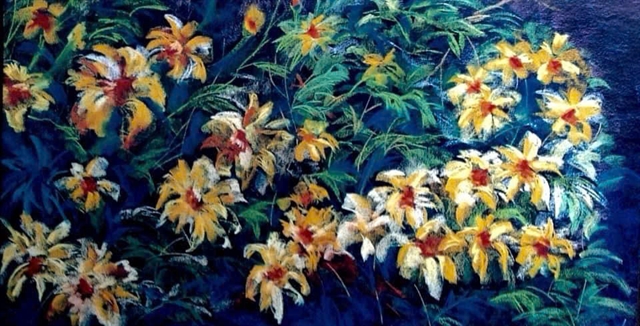 Flower, a painting by local artist Trần Thị Cúc of Đà Nẵng City. Cúc's painting is on display at an exhibition in Paris, France.