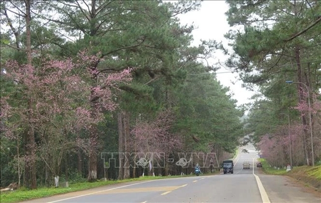 When blooming, prunus cerasoides dyes roads and tourist destinations pink, turning Măng Đen into a sleeping princess who has just awakened. — VNA/VNS Photo