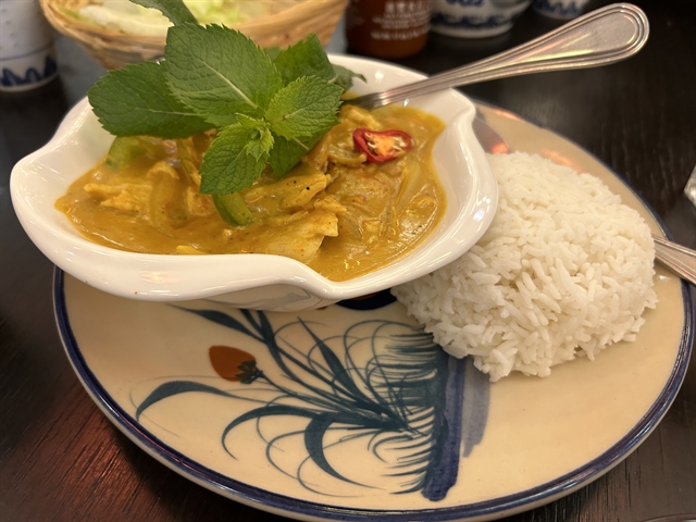 Chicken curry served in Con Gà ceramics could not look more authentically southern Vietnamese. It was just like the dish often served at wedding banquets in the south. They could even have served it with bread instead of rice.