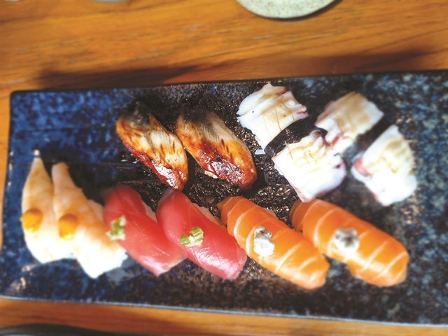 SUSHI SELECTION: A medley of nigri all on one plate.