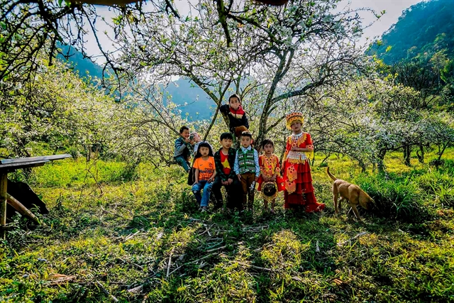 Children play under the plum trees. — Photo nhiepanhdoisong.vn
