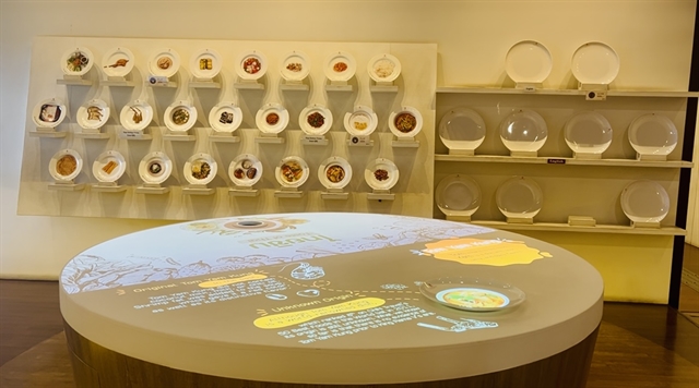 Thai cuisine is introduced to visitors by an interactive table. QR codes are used to display more information in the museum.