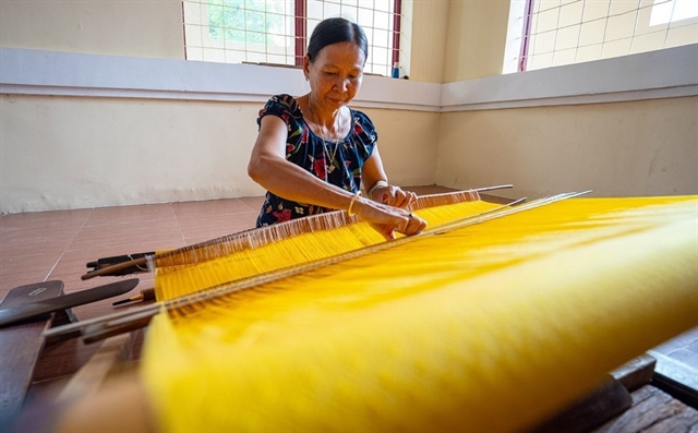 “Weaving requires both concentration and dexterity to turn fine threads into soulful fabric pieces adorned with vibrant colours and intricate patterns. We use two types of frames: long frames for strings and short frames for panels,” weaver Lưu Thị Kim Tuyến said.