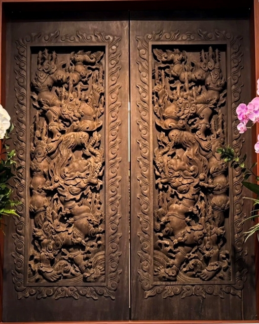 The intricately carved ironwood doorset titled ‘Cửa Long Phúc’ (Dragon Blessing Door) are among four objects created and donated by artisan Trần Nam Tước. – Photo baovanhoa.vn