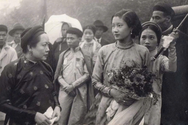 Nguyễn Hữu Thị Lan holds a bouquet during the wedding procession, moments before entering the imperial palace to marry Emperor Bảo Đại and become Empress Nam Phương. File Photo