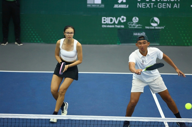 Sĩ Bội Ngọc (left) and Nguyễn Văn Phương in the final of the mixed doubles at the VTV A.O SMITH Pickleball Open 2025 in Hà Nội, which ended on October 26. Photos courtesy of Vietcontent