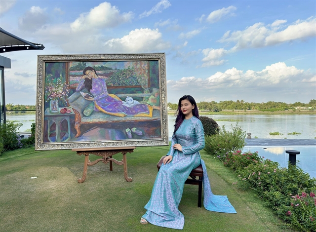 Painter Lê Trang pictured with one of her works of art. — Photo courtesy of the artist