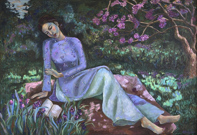 Leisure Time, oil on canvas, by painter Lê Trang.