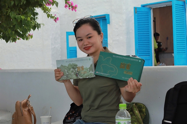 A visitor shows off the new photo book, titled 'Treasure', about the rich biodiversity of the Sơn Trà Nature Reserve in Đà Nẵng. Photo courtesy of Tình Nguyễn