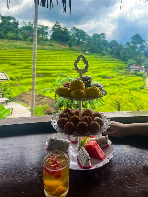 Enjoying a snack at a resort in Pù Luông. VNS Photo Thúy Quỳnh