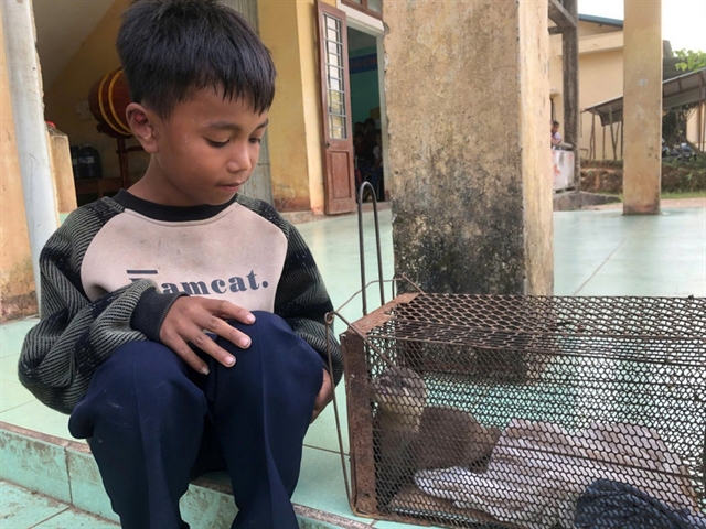 Hồ Văn Xiếc, a fourth-grade pupil at Tà Long Primary School in Đakrông Commune, discovered the weakened otter by a stream. — VNA/VNS Photo