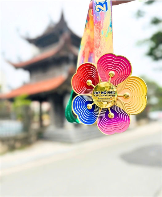 The flower-shaped medal given to those who took part in the Tây Hồ Half Marathon 2025.
