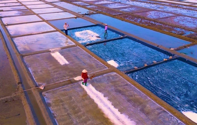 The Sa Huynh salt fields in Phổ Thạnh in Quảng Ngãi Province. The trade of salt production was recognised as a National Intangible for its traditional cultural value and community-based tourism. Photo courtesy of Sahu