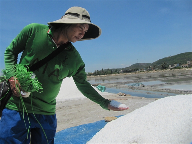 A farmer checks salt at the Sa Huỳnh salt field in Phổ Thạnh in Quảng Ngãi Province. The trade continues to be the main income for the community of more than 1,200 farmers in the area. VNS Photo Công Thành