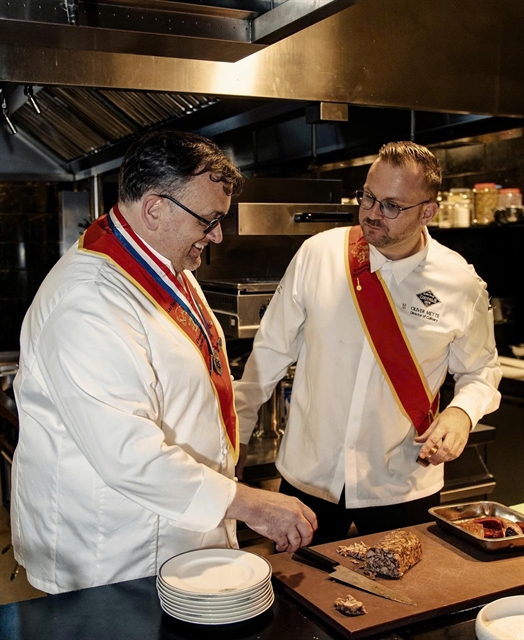 Chef Oliver Mette, director of Culinary at Hotel de la Coupole – MGallery Collection, envisioned reviving century-old French recipes in Sa Pa with a modern, sustainable twist. To bring that vision to life, he invited Chef Thierry Fischer, president of Disciples Escoffier Switzerland and a master of classical cuisine. Together, they created Sapa Sturgeon with Normandy Sauce and Confit Leeks, a dish that marries heritage with innovation. Elegant yet comforting, this recipe is a story told through textures and contrasts – a French classic reborn in the mountains of northern Việt Nam.