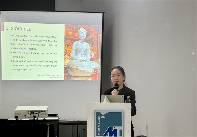 Lecturer Tôn Nguyễn Tuyết Hoa from Văn Lang University talks about the reinterpretation of the cultural values of Lý Dynasty (1009–1225) sculpture through 3D scanning and printing technology. — VNA/VNS Photo Hương Trần