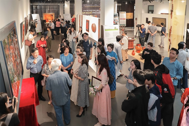 Visitors to Sơn Ta Sử Tích (The Story of Lacquer) exhibition, hosted at the Hà Nội Old Quarter Culture Exchange Centre, located on 50 Đào Duy Từ Street. — VNA/VNS Photo Phan Phương