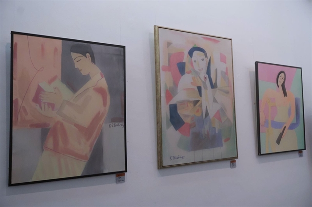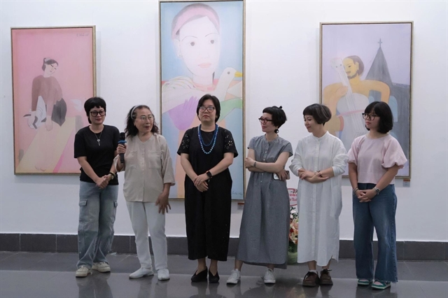 The Vừa Yêu Vừa Vẽ (Love and Paint) exhibition is inspired by a shared passion for silk among the six female artists. — Photo baotintuc.vn