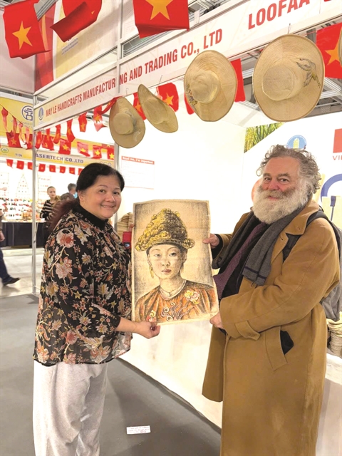 CLASSIC: Y Êli's loofah portrait of Vietnamese queen Nam Phương is exhibited and sold in Italy. — Photo courtesy of Y Êli Buôn Krông