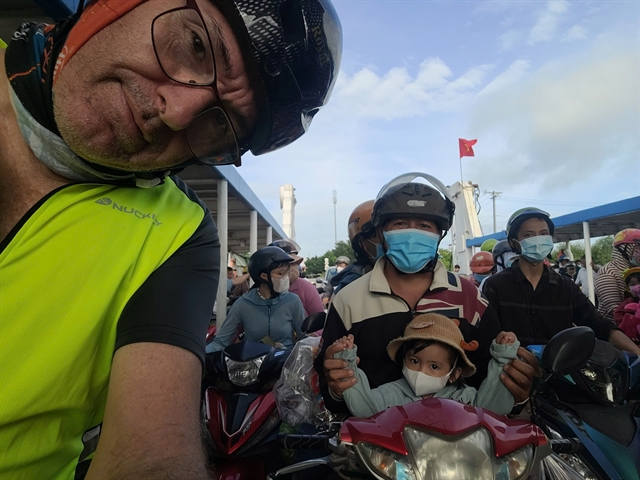 Ray meets local people on a ferry in HCM City on a hot day in March. Photo courtesy of Ray Riches