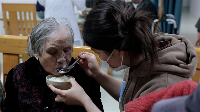 A nurse feeds an old woman at Diên Hồng Eldercare Centre 2. VNS Photo Hải Anh