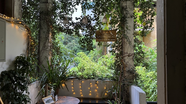 Vines covering every wall at Salmonoid's entrance give it a mysterious and "very Hanoi" atmosphere. — VNS Photo Hamy Nguyễn
