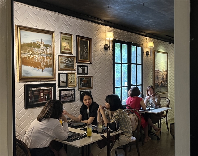 The restaurant's minimalist black and white colour scheme is predominant, while the surroundings are ornamented with paintings of France. — VNS Photo Hamy Nguyễn