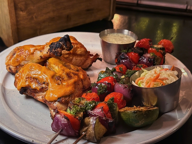 Perfect for one: The 1/4 chicken is a perfect sized portion of chicken for a solo dinner, served here with veg skewers. VNS Photos Alex Reeves