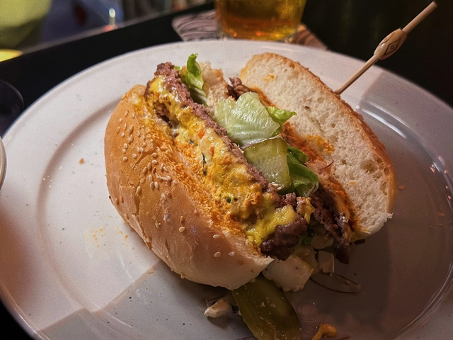 There is, of course, an array of burgers. Double-smash with thick-cut tamarind-cured bacon (VNĐ230,000). Lamb, too rarely found in Hà Nội, is a welcome addition to the menu in both the succulent lamb smash option and their kebab skewers, both adorned with harissa, tzatziki, mint and feta for a Mediterranean twist (VNĐ295,000). Steak will not disappoint, and Sunday roast or fish and chips will leave homesick Brits with much to love. Everything is cooked with intention and is catered to the varied tastes of larger groups.